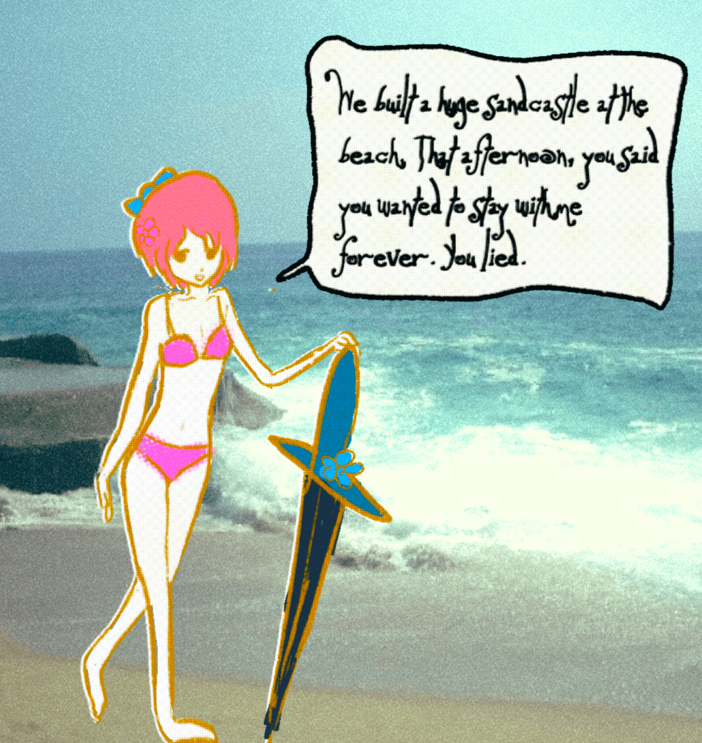 when you left, she was so sad that her soul haunted every love pop song with the eternal image of a sweet pink-haired girl.